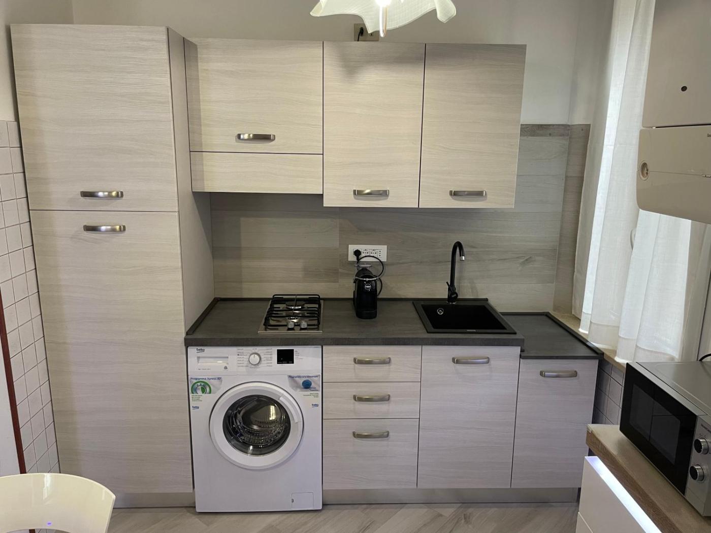 One-Bedroom Apartment. Featuring a private entrance, this air-conditioned apartment comprises 1 living room, 1 separate bedroom and 1 bathroom with a shower and a bidet. Guests can make meals in the kitchen that comes with a stovetop, a refrigerator, kitchenware and a microwave. The apartment features tiled floors, a seating area with a flat-screen TV, a washing machine, a tea and coffee maker, as well as a dining area. The unit offers 2 beds.